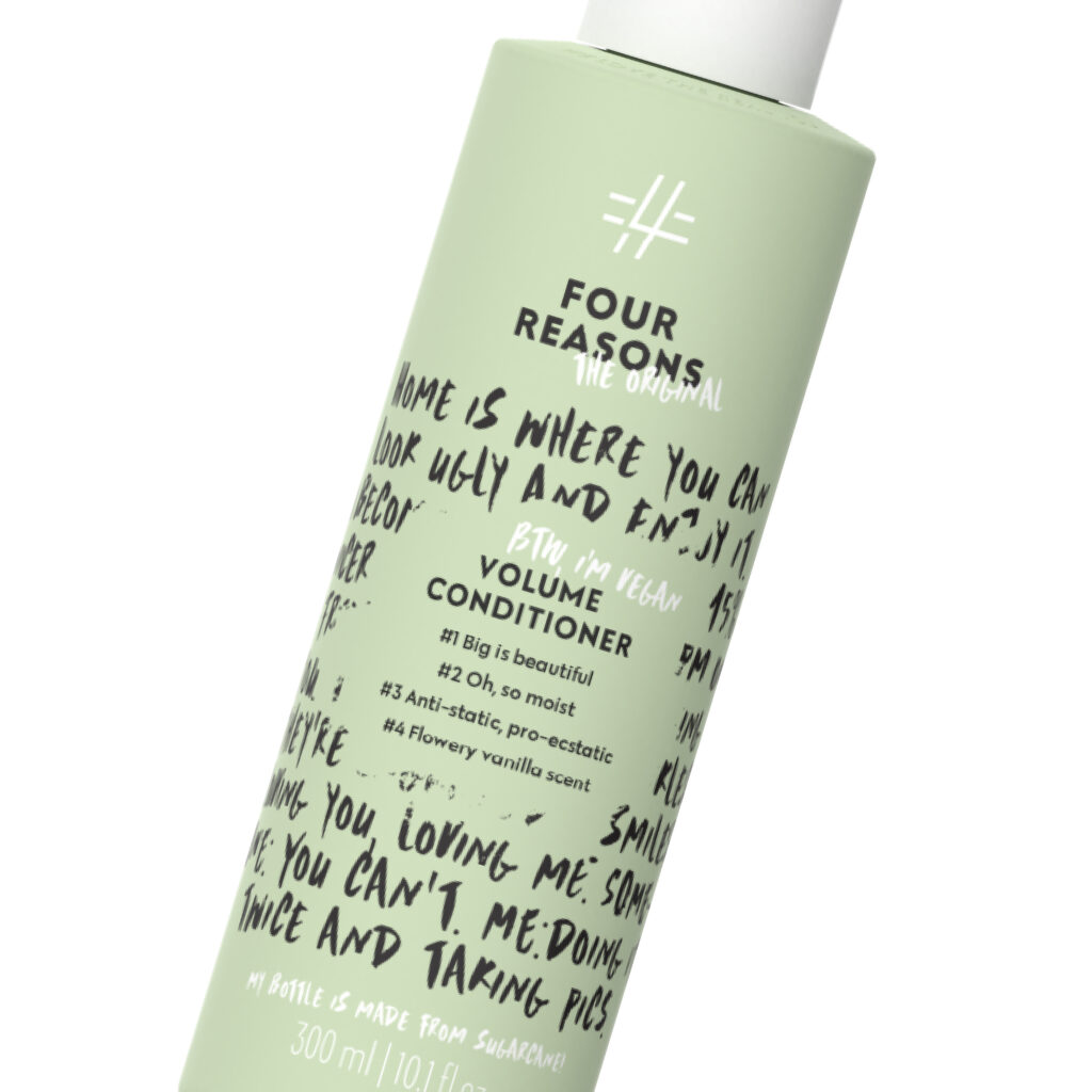 Volume Conditioner to lekka odżywka dodająca objętości, która unosi włosy u nasady i nadaje im sprężystość. Peptydy grochu i proteiny roślinne wzmacniają pasma, pozostawiając je miękkie, puszyste i pełne życia.