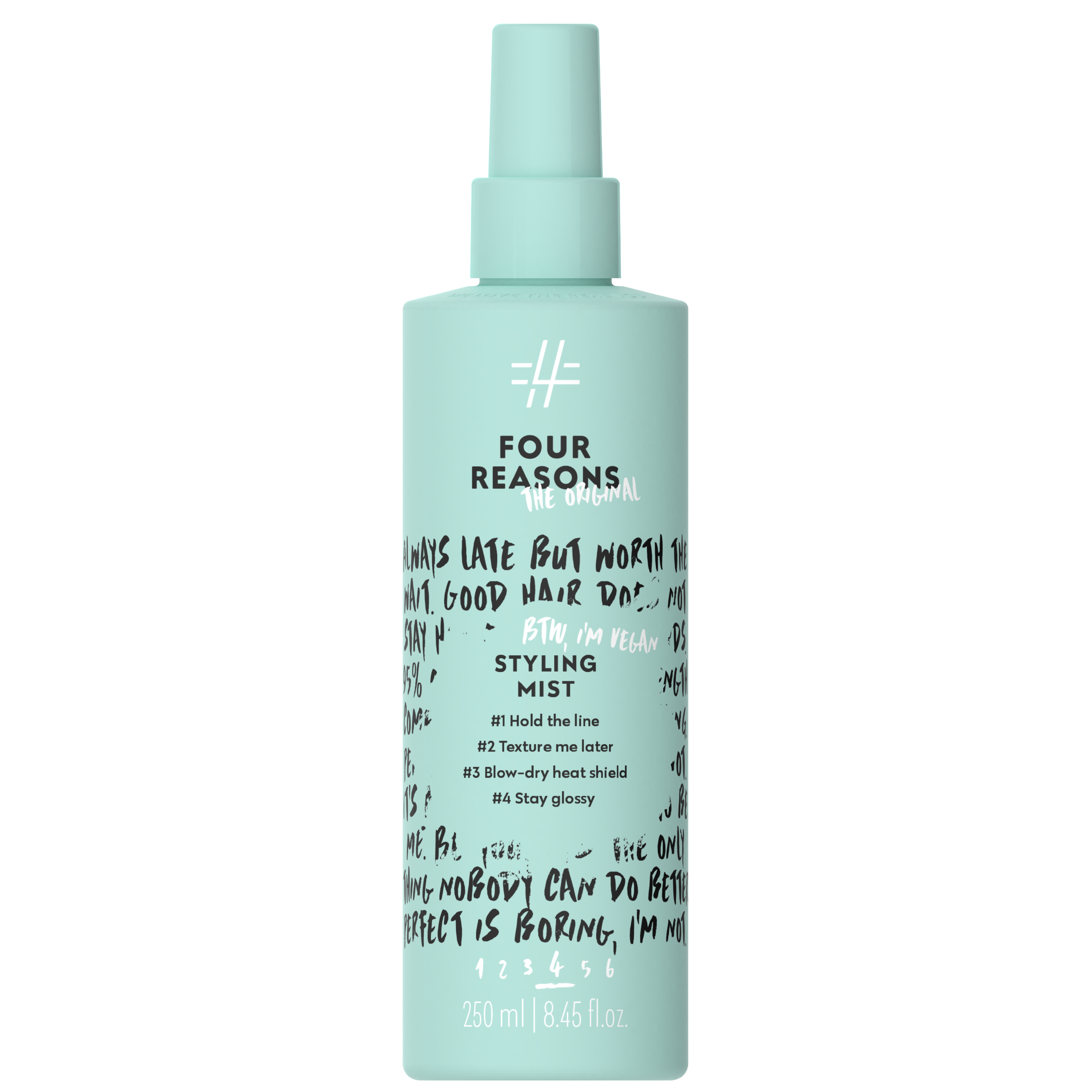 Mgiełka FOUR REASONS została opracowana z myślą o potrzebach każdego rodzaju włosów. Składniki aktywne zapewniają ochronę i nawilżenie, a w połączeniu z technologią termo ochronną, oferują kompleksową pielęgnację.