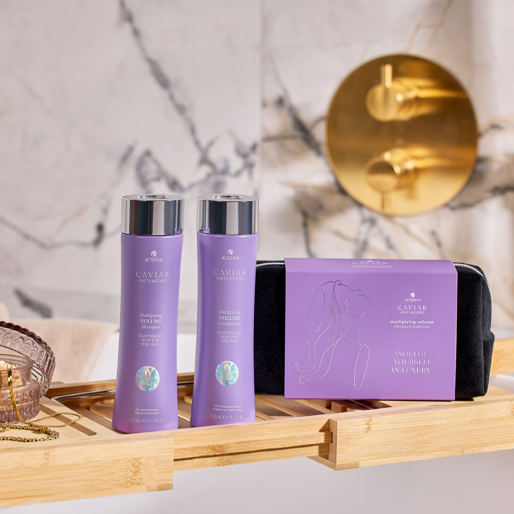 Zestaw ALTERNA Caviar Anti-Aging Multiplying Volume 2024 to doskonałe połączenie innowacji w pielęgnacji włosów z luksusowym doświadczeniem, które odmieni Twoje loki. Oferując lekkość, objętość oraz luksusową kosmetyczkę, ten zestaw stworzony został z myślą o osobach pragnących zadbać o swoje włosy jak nigdy dotąd.