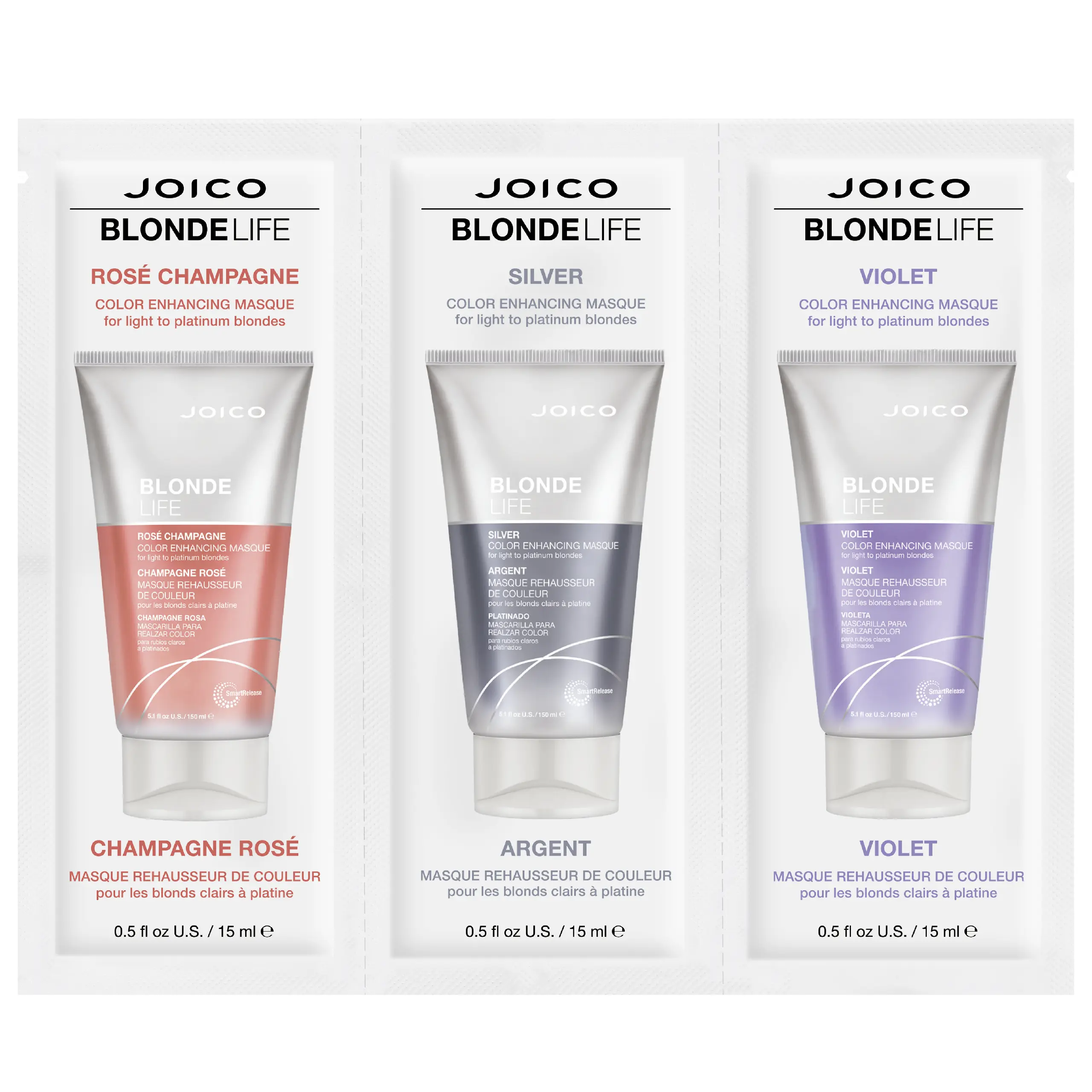 Odkryj wszystkie oblicza swojego blondu z zestawem kreatywnych masek koloryzujących Joico Blonde Life Mask Trio. Specjalnie opracowany dla każdej blondynki, która pragnie wprowadzać zmiany w swoim wyglądzie, ten zestaw to idealne połączenie pielęgnacji i koloru. Dzięki unikalnym formułom, twoje włosy nie tylko zyskują nowy odcień, ale również pozostają zdrowe i błyszczące.